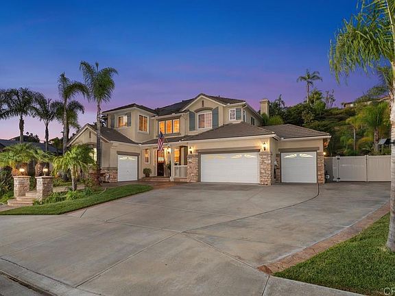 EXTRAORDINARY resort home with OWNED SOLAR & POOL in the prestigious Sage Canyon Ranch community! First time on the market, this home checks all the boxes! Built in 2003, this distinctive home sits on a wide .46 acre lot with stately curb appeal, 4 car garage with EV charging station & potential RV parking! Spacious Plan 4 with almost 3,600 sq. ft., features 4 bedrooms (+ opt 5th), 2.5 baths (easy to convert downstairs bath to full), a dedicated office with rich wood built-ins and large Bonus/Flex/Game room! Impressive, stately curb appeal includes meticulous landscape and hardscape, and a custom front door w/leaded glass sidelights! Elegant entry with 22' ceiling, custom millwork and leaded glass windows to bathe the home in natural light. Formal Living and Dining include a cozy, gas fireplace, casement windows & shutters, crown molding (throughout) are exquisite entertaining spaces! Culinary Delight awaits in this beautiful kitchen complete with granite counters, island with prep sink, full stone backsplash, Monogram Sub-Zero frig, double ovens, 6 burner stove, added lighting & Butler's pantry with brand new wine fridge, upper and lower cabinets with glass display. The cozy family room offers rich custom Entertainment center w/70" QLED TV, surround sound system & large windows to enjoy views of the backyard. Gorgeous home office features custom wall to wall storage with built-in desk. Downstairs Bath is plumbed for shower (per Seller), Laundry Room with storage, new SS sink, window and access to 3 car garage complete the main level. Extra wide staircase leads you to a spacious Game Room with wall mounted dart board and pre-wired for TV's on two walls. This flex space is perfect for Homeschool room, Playroom or additional living space. Enter the double doors to your tranquil Primary Retreat with views of greenery and your pool below. Relax in the luxurious Primary Bath dual sinks, vanity, Travertine stone tile, deep soaking tub, oversized shower with 13' Waterfall shower head and Berkey water purification filtering system! Three secondary bedrooms, full bath and spacious linen closet complete the upstairs. Make lasting memories in this resort backyard complete with newly resurfaced pool with exotic Italian tile inlay, oversized spa, water features, firepit, grassy areas & an outdoor kitchen that is second to none! This well-planned outdoor kitchen takes entertaining to a whole new level and boasts Palapa (waterproof), brand new BBQ with rotisserie, concrete bar with ample seating, new Kegerator, sink, warmer & frig! Tropical landscape with Palms and beautiful fruit trees (Apple, Plum, Avo, Lemon, Orange & more!) New vinyl fencing (inc garbage can enclosure), NEW central dual zone Air/Heating, Air purifying filtering systems, new interior & exterior paint, sound, lighting & home security systems.