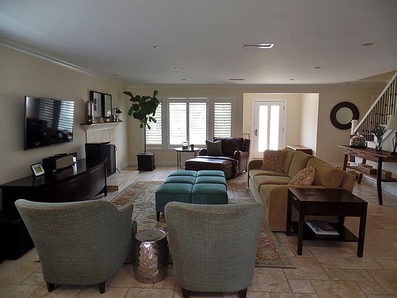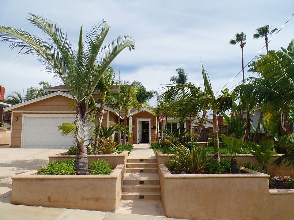 Completely remodeled home close to the beach with 2 downstairs bedrooms with full bathroom and entire upstairs master with deck. Some ocean view from upstairs. Owners did an extensive remodel with tumbled Travertine, custom cabinets, recess lighting, granite counters, s/s appliances, Travertine showers and baths, and more. Beautiful tropical landscaping and hardscaping. Walk to shopping and a bike ride to the beach! Great opportunity to make a move to the beach!