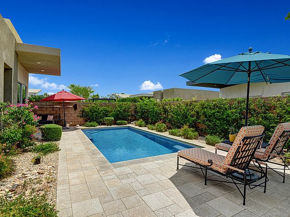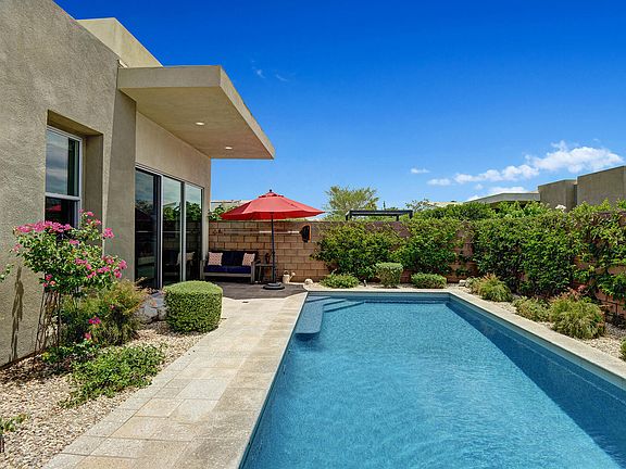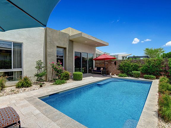 Beautifully upgraded almost new Toll Brothers home in Escena. This 2 bedroom plus den & 3 bathroom home sits on a premium lot with views of the San Jacinto Mountains. The open floor plan consists of a beautiful kitchen with Quartz countertops, Kitchen-Aid appliances, upgraded cabinetry, and a unique center island with a breakfast bar which unites the expansive great room and dining room. The great room comes with surround sound speakers and a Control 4 smart home system and provides rear patio access via sliding glass doors (with motorized blinds) that allow plenty of natural light to fill the home. Enjoy the spacious primary bedroom suite with a giant window overlooking the pool and western mountains and a large walk-in closet. The en-suite primary bathroom has a separate shower, dual vanity & soaking tub. The guest room, with its en-suite bathroom and custom cabinets, and den, perfect for a home office, are separated from the primary bedroom. There is a separate powder room (w/added shower) and a laundry room (w/added sink). Enjoy outdoor living with a side patio for entertaining your guests and a rear patio with a pool with spa jets. Both areas have upgraded pavers. This impeccable property has a water softener & reverse osmosis system, security system, and an upgraded garage door. Escena offers a beautifully landscaped gated community with access to the Clubhouse, golf course, dog parks, and low HOAs.