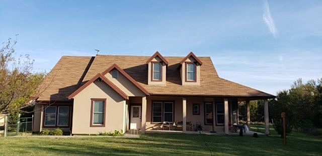 5 bedroom...3 full bath...1 study...2 kitchens. (upstairs can be used for an apartment with 1 large bedroom, living room..kitchen and bath with separate entrance door) (If using the upstairs as an apartment, the downstairs would consist of 3 bedrooms, office, living room, country kitchen, air conditioned -sunroom, 2 full bathrooms. Outside walls are stucco replaced in 2011 along with double pane windows......floors are-tile. wood and carpet .....back has enclosed sun room with concrete sealed floor...built 2020. There is a separate 3 car garage and a 36 x 36 barn master horse barn with cement isle, 4 stalls..tack room cement floor and hay area also cement floor and extended covered porch on 1 side covering 3 stalls The 5.1 acres is fenced. There are 2 separate storage 10x12 buildings...1 is carpeted..new walls and roof...insulated.. (sheshed, craftroom, kennel (many possibilities). Also there is a garden room for planting and keeping tools and pots etc. ...All rooms in house have fans including sun room that has wall air conditioner - heavy duty. There are several fruit trees around the house such as figs, peach, plum, cherry, pecans and other trees such as oak, wisteria and evergreen. 2 sides of the property have many native trees with a riding or walking pathway, which allows for cooler temperatures and a lovely walk among nature.