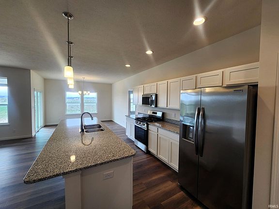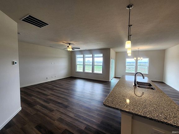 Beautiful, new construction 3 bedroom, 2 bath home located in West Lafayette's Fieldstone at the Crossing features over 1,600 square feet, an open concept living floor plan, and a split bedroom design. Interior features include 9' ceilings, plank flooring in living areas, 2" Wonderwood blinds throughout, a water softener, a washer/dryer set, and transom windows allowing in more natural light. Kitchen features a large island with seating, gas range, stainless steel appliances, granite countertops, custom cabinetry, and a pantry. Primary bedroom includes en suite bath with walk-shower, dual vanity and a large walk-in closet. Also includes a covered patio and a large open patio for outdoor entertaining, a landscaping package, and a home warranty. Community is conveniently located less than a mile to local elementary, middle, and high schools. Close proximity to shopping, dining, community parks, wellness center, Purdue University, and both US 52 & I65. All offers must be transferred to a Builder's agreement.
