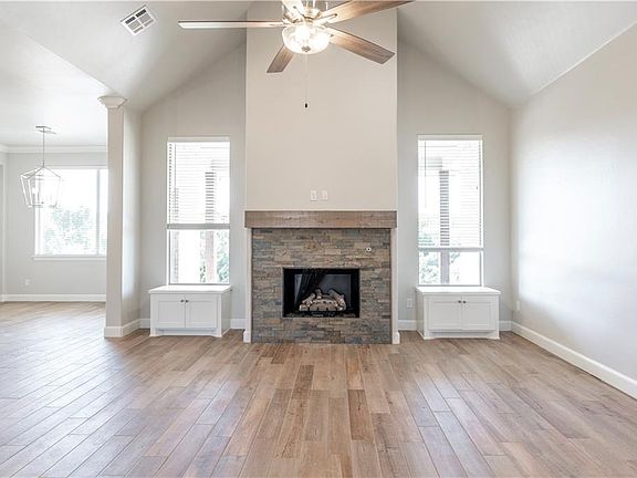WOW- check out this builder incentive of $4,000 to use your way- closing costs or interest rate buy down! Stunning New Construction home on almost 1/2 acre in the beautiful Montford neighborhood. This 3 bed 2.1 bath home with a study or optional flex room has it all! The grand living room exudes style with its center fireplace with built-ins, cathedral ceiling & wall of windows for abundant natural light. The spacious kitchen features an island that overlooks the living room, tons of cabin space & modern appliances. The Primary bedroom includes its own private en-suite with a double vanity, freestanding tub, walk-in shower, & an amazing walk-in closet -with built-ins- conveniently connected to the laundry room. Work from home with the study or use the flexible space as a formal dining, homeschool room or gameroom. Get ready to snuggle up on your back patio & enjoy a beautiful Oklahoma Sunset. Top it off with great curb appeal a split 3-car garage &a large covered porch! Welcome "Home"!