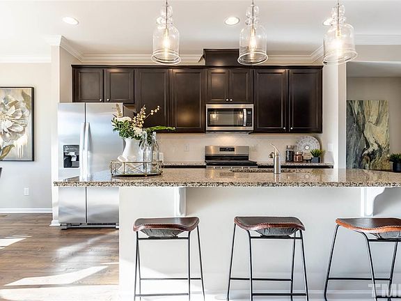 4BR/3.5Bath/2Car gar in amazing Apex location! Popular Hunter plan to be built, model w/ same layout onsite. 3Br upstairs, 1Br/bath on 1st flr. Great extra storage inside! Open floor plan featuring designer 42 inch cabs, stainless steel appliances incl a gas oven & dishwasher, granite countertops, tiled backsplash, large kitchen island, pendant lighting! ENERGY STAR Certified! Lawn maintenance included, extra parking in community! Wide sidewalks connect you to movies, shopping, dining, Publix, etc!