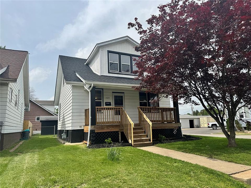 Freshly remodeled and full of charm, this 3-bedroom home is located on a quiet street and sits on a spacious corner lot. From the moment you arrive, you’ll notice the attention to detail starting with the new roof, refreshed landscaping, and brand new front and rear decks that offer great outdoor living space. Inside, the home has been thoughtfully updated with all-new flooring, light fixtures, and fresh paint throughout, creating a clean and welcoming atmosphere.The updated kitchen features new cabinetry, countertops, and appliances, providing both style and function for daily living or entertaining. Both bathrooms have also been fully renovated with modern finishes, adding to the home’s move-in-ready appeal. The backyard offers additional space to enjoy, and while partially fenced, it also includes a detached garage with a manual garage door—ideal for storage or lawn equipment. All information is deemed reliable but not guaranteed. Buyers should independently verify all data.