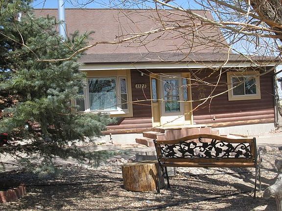 This is a one of a kind, beautiful log home with over 3 acres of land, Gorgeous open floor plan with vaulted ceilings all finished in wood. The rock fireplace in the Family room is very impressive. You'll enjoy having the entire family for dinner in the huge country dining room with a nice wood burning stove to keep everyone toasty warm during the winter months.You'll enjoy cooking in this large kitchen with a breakfast nook next to the fireplace and family room. Enjoy the warm cozy wood stove also in the living room. Just off that room, you'll find 2 bedrooms.The master bedroom overlooks the beautiful fireplace and wood interior vaulted ceilings. Master bathroom features a wonderful nice deep clawfoot soaking tub and a huge walk-in shower. Also, the on-demand Rinnai water heater is rather nice. The windows were replaced only 3 years ago. All appliances are included. You won't get too hot in the summer, this home it features a huge commercial type evaporative cooler. You'll love entertaining in the spacious kitchen, it will make cooking a breeze! Enjoy the private covered deck in the backyard and huge covered deck just off the kitchen and family room. The garage has plenty of cabinet storage space and a nice workbench. The firewood is also included with your purchase.The exterior of the home has been scheduled to be painted and completed in the next few weeks.Taves reflect Sr discount. Bring your horses to an already fenced in 3 acres.