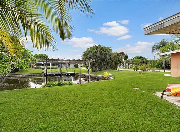 Location! Location! Location! Gulf Access Vintage 3/2 pool home with 85' of seawall located on the Wisteria Canal a little more than 1/2 mile by boat to the Caloosahatchee River. Off Prestigious El Dorado Parkway and minutes by car to either Downtown Cape Coral Entertainment District or Cape Coral Yacht Club. Oversized corner lot with water pond display and lush tropical landscaping featuring banana and mango trees. New tile flooring in bedrooms. Potential is unlimited. Make this home your southern getaway, primary residence or vacation rental. AMERICAN HOME SHIELD WARRANTY AVAILABLE!