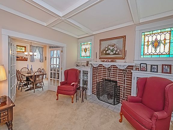 A true architectual beauty awaits you! Entering from the large front porch you are welcomed by a grand foyer with beautiful window seat. Steps away you will find the living room with coffered ceiling, fireplace, built in bookcases, all accented by original stained glass windows for you to enjoy cozy family gatherings. Entertain in the oversized dining room just off the efficent kitchen. A front/back staircase makes access to the upstairs convenient. Large bedrooms flooded by light from the beautiful windows create a peaceful atmosphere. One full bath with remodeled shower complete the second floor. Large walk in closets with storage galore through out the home are a rare find! The large basement, oversized garage and lovely yard complete the house with everything protected by a Home Warranty. Welcome home!