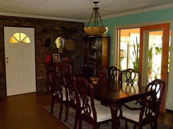 Open floor plan with kitchen open to den and dining rooms. Large sunroom on the back. The back of the property fronts on Leaf River. It would be a great spot for a camp. Seller would consider dividing property.
