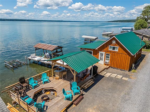 ENJOY THE LAKE LIFESTYLE WITH THIS LITTLE SLICE OF WATERFRONT HEAVEN ON CAYUGA LAKE FEATURING APPROXIMATELY 113' OF PRISTINE LAKE LEVEL WATERFRONT WITH A CONCRETE BREAKWALL, PERMANENT DOCK & EXPANSIVE WATERFRONT DECK! THIS CHARMING WATERFRONT CAMP HAS BEEN TOTALLY RENOVATED & IS THE PERFECT PRIVATE RETREAT FEATURING A GREAT ROOM WITH AN ADIRONDACK STYLE EAT-IN KITCHEN WITH A SITTING AREA! RELAXING WATERFRONT SUNROOM WITH A SLIDING GLASS DOOR TO THE EXPANSIVE SCREENED-IN PORCH THAT IS "RIGHT ON THE WATER" WITH DECK ACCESS! TWO FIRST FLOOR BEDROOMS, A POWDER ROOM & A FULL BATHROOM, PLUS A SLEEPING LOFT! THE MOST INCREDIBLE WATERFRONT WITH AN EXPANSIVE DECK WITH A GRILLING AREA, A COVERED SITTING AREA & A FIREPIT AREA... ALL OVERLOOKING THE PERMANENT DOCK WITH A BOAT LIFT & A PHENOMENAL CONCRETE BREAKWALL! ENJOY THE CRYSTAL CLEAR WATERFRONT WITH BREATHTAKING PANORAMIC VIEWS EVERYWHERE YOU LOOK. PREMIER LOCATION TOWARDS THE END OF HONOCO RD. FOR ULTIMATE PRIVACY WITH PARKING FOR 7+ CARS, PLUS MINUTES TO LONG POINT STATE PARK TO LAUNCH YOUR BOAT, THE QUAINT VILLAGE OF AURORA, MACKENZIE-CHILDS & DEL LAGO CASINO! SqFt off floor plan