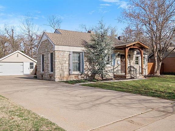 Absolutely enchanting home in the coveted Brookhaven addition. This updated home is special and elegant and sits on stunning wooded lot. Living room French doors will lead you to deck overlooking creek and tree lined oasis. Light and serene primary suite bedroom featuring steps and french doors into dressing area and huge closet. Bathroom has been updated to perfection with jetted tub, new tile and marble floors. White kitchen features all white cabinetry, crystal light countertops, stainless steel appliances and tile backs pash. Lightly colored floors throughout with designer lighting, wood shutters and some new windows. Just seconds away from I-44, Western Avenue district, Classen Curve and only minutes from downtown.