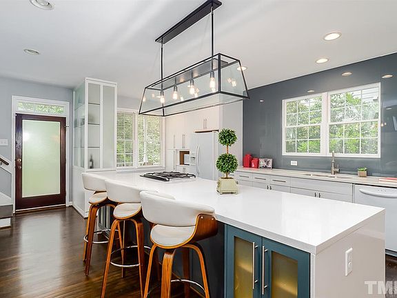 So much character! Open floor plan w/4 bedrooms, 3.5 baths & an office. This beautifully updated home sits across from a city owned park like setting with meandering creek. Natural light pours in from large windows! Amazing custom lighting, granite cntertops & hardwoods throughout. Alleyway behind the home gives access to the rear driveway for ample off-street parking. Conveniently located within walking distance of shops, restaurants and Mordecai mini park. Don't miss the fabulous outdoor living spaces!