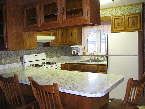 Convenient location between Somerset and Johnstown. Neat 1.5 story, 4 bedroom, 2 bath with 2-car garage. Windows replaced, roof 9 yr, 4 zone heat, insert fireplace in living room, central air + 2 wall units in family room area. 200 amp electric. HW floors in LR, dining area; security system available (mo fee), heat cost includes heating water. Ramp to front door could be removed. Fencing and shed in back yard.