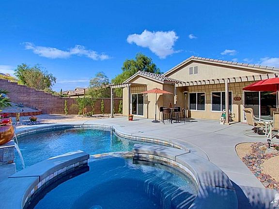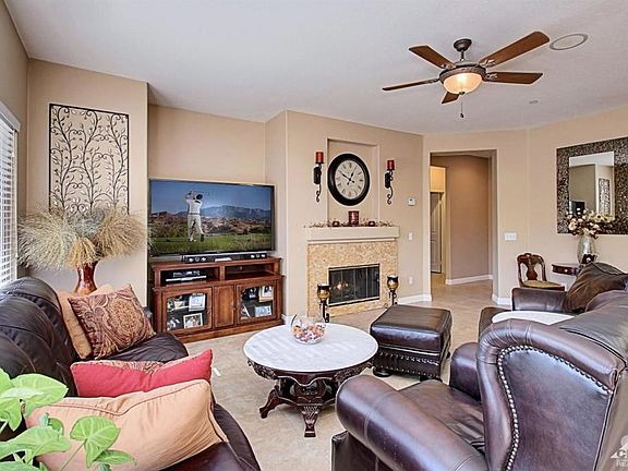 This Home You can call PARADISE! This 3 Bedroom, 2 Bath Home looks just like a MODEL HOME in mint condition!! Newer CUSTOM PRIVATE Pebble Tec POOL & SPA, with A GEORGOUS WATERFALL, patio slab and custom Landscaping and don't forget that great Mountain View of the Palm Spring Aerial Tramway from the Backyard. This Home has a Beautiful Kitchen Island with top notch Stainless Steel Appliances along with a custom pantry and a Large Greatroom. Beautiful Custom Window Coverings throughout the whole entire house, along with ceiling fans! Large 24x 24 Tile Floors throughout the whole entire house. Custom designer two tone Paint on all the walls. Finished front and rear low maintenance landscaping, automatic sprinklers. Inside Laundry Room, Cozy Gas Fireplace with Ledger stone that is lit from a flip of a switch. 2 Car Garage. Located in Mountain Gate, the number one gated Community in Palm Springs. 3 community pools and spas, 2 tennis courts, Basketball Court and dog park.