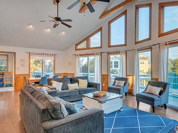 This Corolla Light gem has it all and is one of a kind! This is the outstanding location you have been waiting for! The large, open great room with high ceilings and lots of light is delightful. Enjoy the peaceful sounds of ocean waves from a spacious prow front design that will delight both young and old in this bright, well-equipped beach house that's comfortable and centrally located close to the beach and neighborhood amenities. It's easy beach living at its best. The oceanside location in the fantastic Corolla Light community can't be beat with just a short 5 minute walk to the stunning lifeguarded beach or oceanfront community amenities including 3 oceanfront pools with poolside dining, playgrounds, basketball courts, shuffleboard, planned activities and more! Bike or take the community trolley (seasonal) to the indoor sports center featuring indoor pool, hot tub, exercise room and indoor tennis. Or, walk 5 minutes in the other direction to the beautiful soundside trails for the very best sunsets and kayaking. Also, nearby is the Currituck Heritage park housing the historic Whalehead Club and Currituck Lighthouse. Corolla Village is just beyond and features a BBQ restaurant, smoothie window, well-stocked bookshop, artist cooperative with local art to find a keepsake from your trip and so much more! Don't miss the lighthouse views as it lights up the OBX night sky. Just a short walk to the beach or oceanfront community amenities or take the community trolley (seasonal) to the indoor pool. Or, enjoy the spectacular pool and game lounge area at home with bar, TV, fridge, ping pong, and new hot tub. The recreational area on the first level is exceptional! Each of the 5 bedrooms has their own bathroom and 4 are master suites. The kitchen was updated with new appliances in 2018/2019. This is a lovely home that has been carefully maintained. The current owners had all the plumbing redone in 2022. The hot water heater was new in 2021. New hot tub in 2021. The pool heater was installed in 2020, 2 bathrooms were added, 2 additional ground level storage rooms were built, new deck furniture, New flooring throughout, new ceiling fans installed, pool cabana area was added, outdoor bathroom and shower area was added, 8 TV's were replaced with flat screen TV's, bedroom furniture was replaced in 2016, 2nd level HVAC was replaced in 2018, Tile shower in master suite in 2018. The current owner has blocked all off season/shoulder rentals and uses the home during peak season so the rental potential is much greater than current numbers. Please ask to see the rental projections!