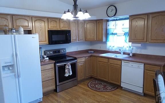 Beautiful well maintained home with Open Floor Plan! Spacious kitchen with plenty of cabinets and pantry. 3 nicesize bedrooms for the family. Main bath has a large walk-in shower. Master suite with bay window plus a 4 piece master bath. Rocklandscaping with nice mature trees all on a drip system. 12 x 24 Shop that is fully insulated & has electric. Large 2 car garage which isalso finished and insulated. the back yard is completely fenced with drive thru gates. Nice views! The lot south of home is alsoavailable for purchase!