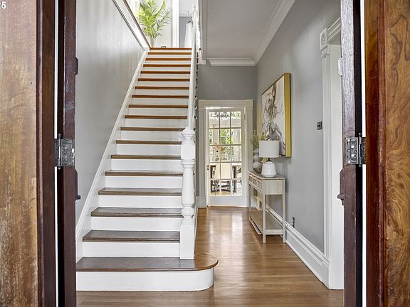 Welcome to the Jewel Box. In the heart of Portland’s beloved Irvington neighborhood sits a truly rare find: a lovingly restored 1893 Victorian, rich with character and soul. Now only on its third family, this home radiates the warmth, grace, and craftsmanship of another era. From the moment you step inside, you're greeted by soaring ceilings, gleaming oak floors, original brass hardware, and an abundance of natural light. Every corner reveals a feature to fall in love with— pocket doors, crown molding, leaded and stained glass,fireplace and custom-milled finishes that echo the home’s timeless character. The feeling? Pure magic. This is one of those rare homes that simply feels good—light-filled, peaceful, and private. Second and third floor views give you the sensation of living in a treehouse, wrapped in dappled sunlight and serenity. A meticulous three-phase renovation thoughtfully enhanced every corner of this home, seamlessly blending modern updates with timeless charm. The open-concept kitchen boasts marble countertops and a professional-grade gas range, making it a true chef’s haven. French doors open to a spacious deck, perfect for al fresco dining and entertaining. Remodeled bathrooms, and all-new plumbing, roof and electrical provide modern comfort, all while preserving the home’s original soul. The sun-drenched 3rd floor has been beautifully transformed into a versatile retreat - perfect as a guest suite, creative studio, or even a serene primary bedroom. Outside, discover your private backyard oasis, professionally landscaped for quiet moments or entertaining. A charming detached garage with stained glass and a separate studio cottage provide additional flexibility. Lower level features a gorgeous fully equipped apartment with private entrance - enjoy income potential through Airbnb, long-term rental or perfect guest quarters. Just blocks from Broadway shops, restaurants, schools, and parks, this home offers not just a place to live—but a way to live. [Home Energy Score = 2. HES Report at https://rpt.greenbuildingregistry.com/hes/OR10237375]
