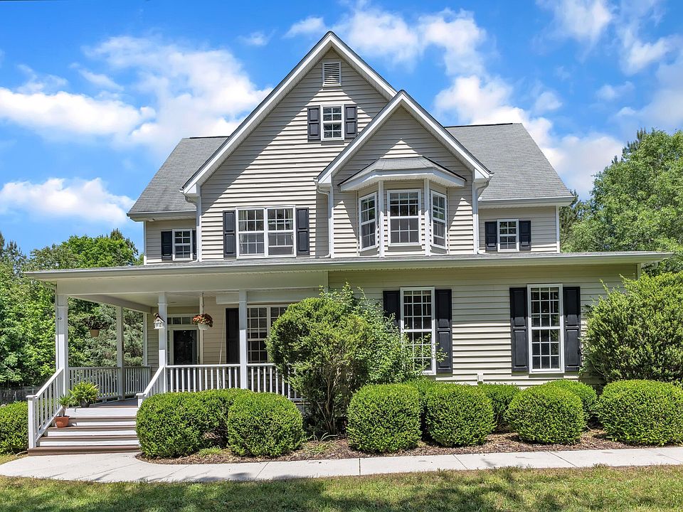 Charming Country Home on 5.7 Acres - New Roof & Fresh Updates! Dreaming of peaceful country living? This inviting 3 bedroom, 2.5 bath home (plus bonus room) sits on nearly 6 private acres at the end of a quiet cul-de-sac in desirable Bobcat Point. Inside, enjoy a bright, open layout with gleaming hardwood floors, a cozy family room with gas-log fireplace, and a gourmet kitchen with quartz countertops, center island, double pantry, and cheerful breakfast room. The spacious primary suite features a spa-like bath with soaking tub, dual vanity, separate shower, and walk-in closet. A sunny three-season porch overlooks serene woodlands perfect for year-round enjoyment. Outside, the expansive yard includes fruit trees (peach, apple, pear, blueberry), a garden area, and a shed/workshop. A large unfinished attic offers excellent storage or future living space, and the side-entry 2-car garage adds everyday convenience. Horses allowed. All this, just a short drive from Chapel Hill, Jordan Lake, and RTP - you'll have privacy and space without giving up convenience. This special home is full of heart - come and see it for yourself. Schedule a showing today! No HOA & NO City Taxes