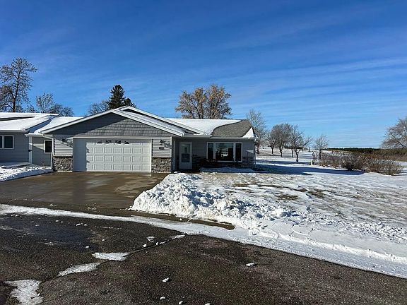 Experience the convenience and comfort of main-floor living with zero steps in this lovely 2-bedroom, 1 ¾-bath twin home. This property offers both practicality and style, featuring an insulated and heated 24’ x 24’ garage. The custom oak cabinetry, including pantry slide-outs, under cabinet lighting, and roomy shelves in the kitchen and bathrooms, adds a warm, timeless touch. At the same time, a dual-zone air conditioner/heat pump & dual zone high-efficiency gas in-floor heating ensures year-round comfort on the warm wood laminate flooring, comfortable cozy carpet, and easy clean laundry linoleum. The 36” wide doors and 42" hallways throughout enhance accessibility and ease of movement. Relax in the bright, inviting living room or enjoy the peaceful back patio, perfect for unwinding alone or entertaining guests. Shade or privacy can be easily obtained by closing the custom blinds and shades throughout the house. Situated just a short walk or drive from the downtown main street with its growing selection of shops and restaurants, this home is ideally located. Enjoy nearby recreational opportunities, including biking or hiking on local trails, and don't miss the short walk to the Giant Troll by Thomas Dambo in Wannigan Regional Park. Designed for easy one-level living and peace of mind, this beautiful home is waiting for you. Visit today and fall in love before it's gone!