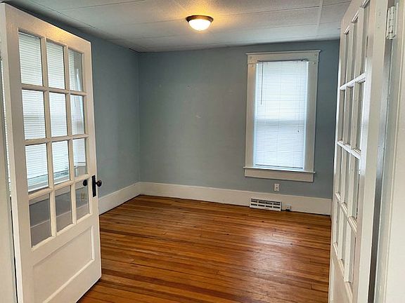 Two Bedroom One Bath Home close to downtown. This home features a big living space on the main level which includes a nice sized living room, dining room, office with french doors and two bedrooms. Beautiful wood flooring in each of these rooms. Bathroom has a claw foot tub with shower. White kitchen cabinets and neutral countertops. Enclosed back porch and staircase to the unfinished basement. One stall detached garage and alley access. Ready for viewing.