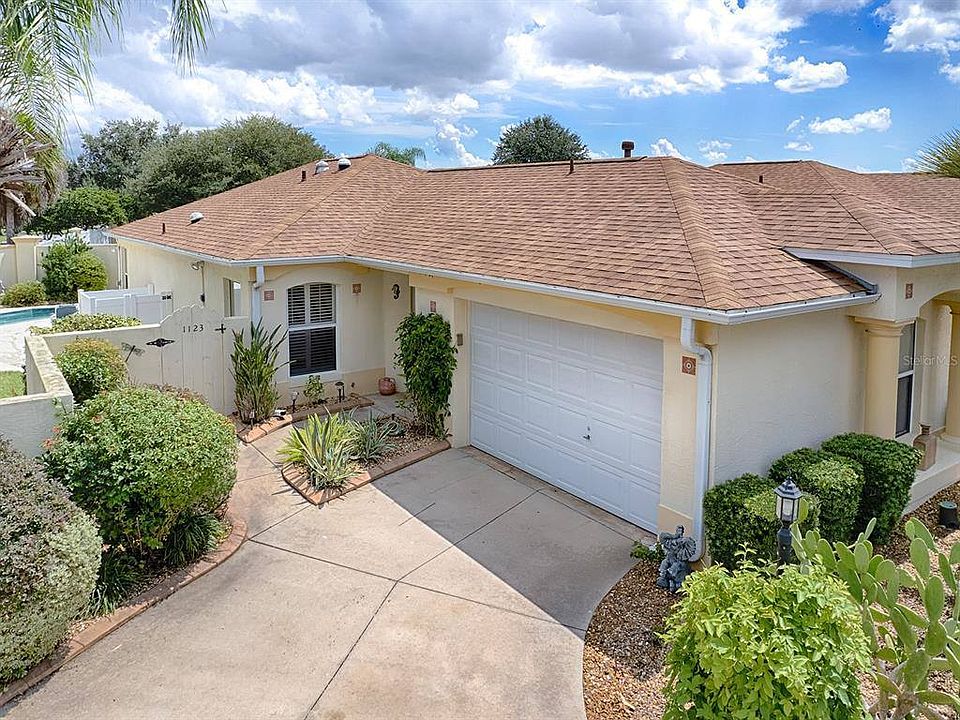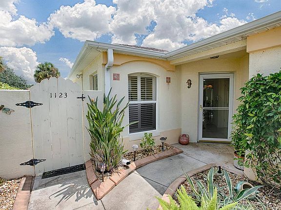 YOU HAVE TO SEE THIS UNIQUE TURN-KEY STUCCO 2 Bed 2 Bath Courtyard Villa on a HUGE CORNER LOT in The Village of Santiago. BOND PAID. NEWER ROOF (2018), NEWER HVAC SYSTEM (2018) & tankless water heater. This property has a HUGE COURTYARD area that features a SWIM SPA equipped with underwater lights & jets, a large Patio, and gorgeous mature Tropical Landscaping. The interior of the home features beautiful DIAGONAL TILE & HIGH CEILINGS THROUGHOUT, FIVE SOLAR TUBES for plenty natural light. The kitchen comes equipped with all STAINLESS STEEL APPLIANCES, a GAS CONVECTION STOVE, and a Eat-in Kitchen. Other upgrades include DOUBLE PANE windows, PLANTATION SHUTTERS in the guest bedroom, a GLASS-ENCLOSED LANAI, retractable outdoor awnings & a Nest thermostat. This home is just waiting for you to come and enjoy the huge outdoor entertaining space! DON'T MISS THIS ONE before its gone!