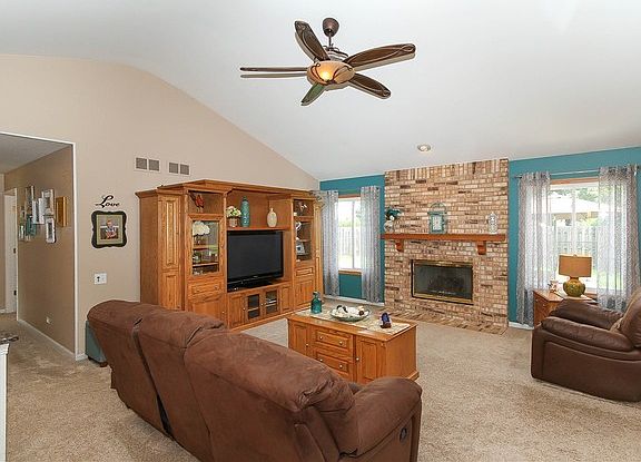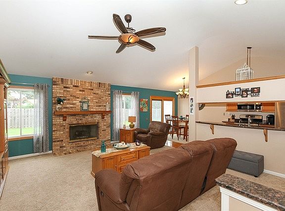 Absolutely move in ready. Upgraded and updated in today's style and colors with an awesome open floor plan. Just some of the updates in the last few years include a new roof, siding, windows, water heater, carpet, insulated garage door, new front door, all lighting fixtures, and master bath. Open kitchen has oak cabinets, granite countertops with breakfast bar, stainless steel appliances that all stay and hardwood floor. Eating area opens to extended concrete patio and fenced yard. Great room has brick fireplace with gas start and vaulted ceiling with lighted fan. Three bedrooms and 2 full baths on main floor along with laundry. Master has updated vanities and walk-in closet. You will fall in love with the full finished basement that boasts a full bath with jacuzzi tub, bedroom or office, large Rec room with solid oak dry bar that owner is willing to sell. Plus plenty of storage too! Homeowner throwing in a HWA Home Warranty just to seal the deal. See today!!