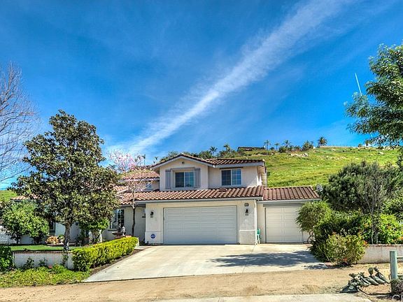 This stunning turnkey Norco Hills home offers high-end luxury in a park-like private setting. Numerous custom upgrades throughout include wainscoting, crown molding, plantation shutters, ceiling fans and beautiful distressed pecan hardwood flooring. The country French kitchen has Carrera marble countertops, an oversized butcher block island, custom lit display cabinetry and stainless Kitchen Aid appliances including double ovens. Kitchen opens to oversized family room with gas fireplace and sliding French doors which lead to the covered patio and spacious backyard with numerous fruit trees, mature rose bushes, hydrangea, camellias and a fenced vegetable garden with arbor along with a chicken coop and aviary. 11' ceilings in living and dining room with a crystal chandelier and French doors leading to 'secret garden'. Full bath and office (which could be converted to 4th bedroom) located downstairs. Upstairs spacious Master suite includes his and her walk-in closets with built-in organizers. Master bath features separate vanities, soaking tub and walk in shower. Located on a quiet cul-de-sac with full three car garage plus flex space currently being used as a workout room. RV potential. This property won't last!