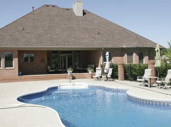 Custom built all brick home with beautiful inground pool, covered pavillion with fireplace, solid oak study, crown molding, stone countertops, flooded with natural lighting, all BRs on main level w/ den and bonus on second level. Beautiful open spaces.