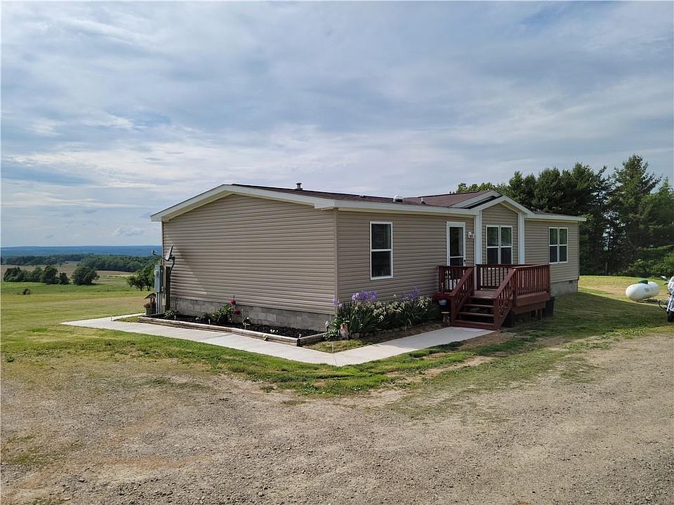 Delayed Negotiations until 6/14/21 ~ Privacy Abounds! ~ Huge Lot with spectacular a view! ~ Built in 2017 means Furnace, Roof, Windows, Kitchen, Bathrooms, Water System etc. etc. are all like New ~ Additional acreage on past the hedgerow and creek perfect for hunters ~ Enjoy Sunsets off the Deck while you entertain your family or friends ~ High Speed Internet through Zoom from Armstrong Fiber Optics. Manufactured home. Town tax amount to be adjusted pending receipt with the town.
