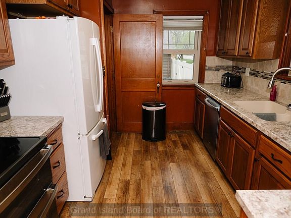 Charming brick bungalow blending original character with modern comfort. Inside you'll find 3 bedroom, 2 bathrooms, with a bonus room in the basement. This home has a large laundry room in the basement, as well as laundry hookups in one of the main floor bedrooms. The kitchen was updated in 2017 and offers a double oven you'll love. Enjoy outdoor living on the welcoming front porch or entertain in the full fenced backyard-ideal for pets or gatherings- take advantage of the detached 2-car garage. This home offers the perfect balance of vintage charm and everyday functionality, appealing to buyers who appreciate both cozy character and thoughtful updates.