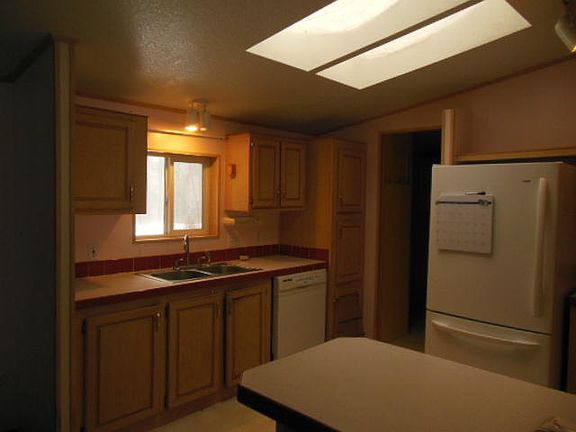 Two for one. A double-wide with 3 bd & 2 bath with detached 2 car garage/shop plus a barn/shop. Back covered porch, level ground, some trees & city water. A single-wide with 2 bd & 1 bath that would make a great rental or additional family residence. 4 miles from town with easy access on 4.6 acres.