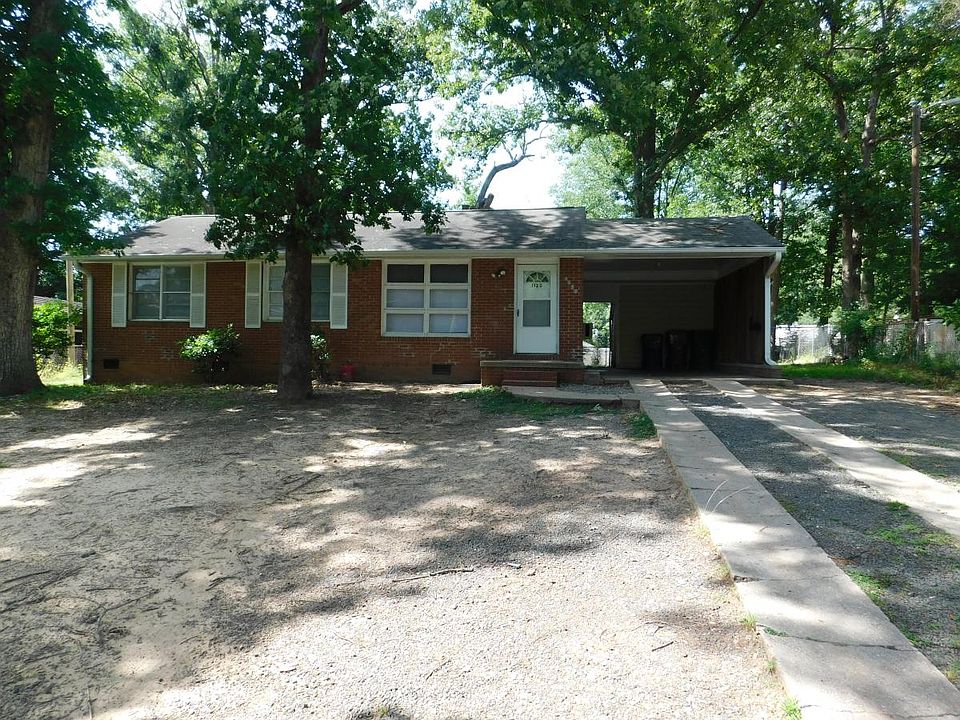 Three-bedroom, one bath, brick ranch-style home with carpet throughout. Long driveway with carport. Fenced on both sides of the property.
