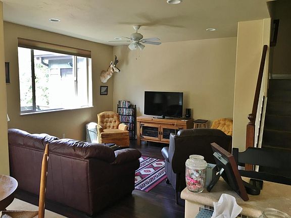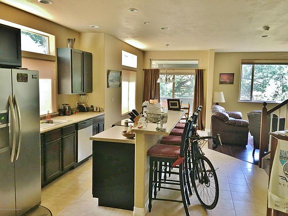 Step-up to greater quality and style in this well maintained end unit townhome with open floor plan, privacy, mature trees, and a rear deck overlooking Rifle Creek ideal for summer BBQ's!Upgrades and quality features include laminate wood flooring in halls and living room, tiled kitchen floors, back splashes, and dinette, plus added sound insulation in partition wall of LR and master BR for enhanced peace and privacy. Extended breakfast bar for added seating capacity combined with stainless steel appliances and open kitchen design make for ideal entertaining!Upper level bedrooms and baths feature a master BR with dual vanity sink and open walk-in closet. (Please exclude the bidet from sale).The package is completed with central air conditioning and an insulated garage door. Hurr
