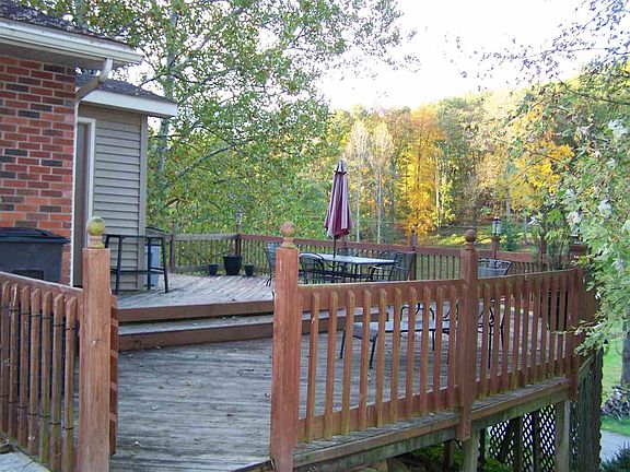 Looking for some country living with scenic views? This property is for you! This ranch brick features 3 bedrooms, fully equipped kitchen, large dining room, living room with tile floor, & 2 full baths. Everything on one floor plan. The living room features a vaulted ceiling as well as the master bedroom. You will love sitting on your deck looking at the scenic views of the nearby countryside. The property features an above-ground pool with a pool house, 28 x 13 steel storage building about 3 years old, underground wireless fencing around the perimeter of the property for your doggies all this on about 2 +/- acres.