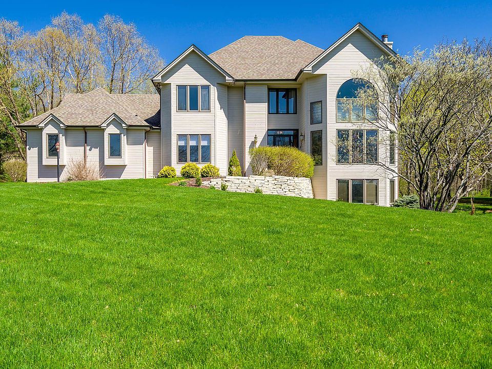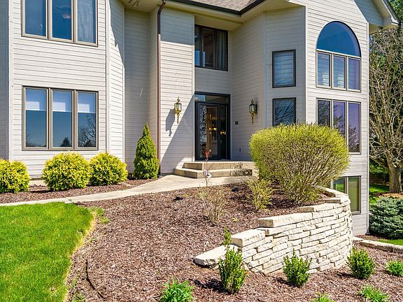 This stunning 2 story home in Boone County is situated on almost two acres of private land, nestled in a quiet cul-de-sac. Boasting over 5000 SF of living space, this home features 5 bedrooms, 4 bathrooms and a 4 car garage, making it the perfect home for a growing family. As you step inside, you'll be immediately impressed by the soaring vaulted ceilings and walls of windows in the formal living and dining rooms, that flood the space with natural light. The updated kitchen features granite countertops, stainless steel appliances, walk-in pantry, center island and plenty of cabinet space and overlooks the dining area. The large family room provides a comfortable and cozy space to relax and unwind, offering stunning views of the private lot outside. There is an office, main floor laundry and a full bathroom that finish the main floor. The upstairs features a large primary suite with updated en-suite bath, walk in closet and extra storage space. Upstairs you will find a second large bedroom with en-suite bath. The walk-out lower level offers three bedrooms, full bath, a home theater, and a bonus room being used as a gym. Great location near Mercy Hospital, I-90 and shopping. Don't miss out on this opportunity to own this beautiful home in the Belvidere North School district.