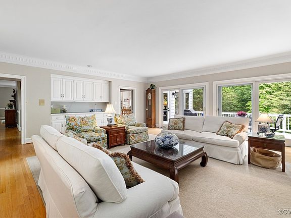 Gorgeous Dutch Colonial with Williamsburg Charm! There’s so much to love about this stunning home. As you step into the foyer, you're welcomed by beautiful hardwood floors that run throughout the first and second levels. From the front door, you can see straight through to the bright morning room, where large casement windows overlook the backyard, giving you the feeling of being nestled in a treehouse. The kitchen is a dream for cooks and entertainers alike, featuring a spacious eat-in area, granite and quartz countertops, a center island, and a cooktop with a decorative hood, wall oven and microwave. The large dining and living rooms flow seamlessly together, highlighted by a cozy wood-burning fireplace — perfect for gatherings. The family room offers built-in shelving surrounding a gas fireplace, a wet bar, and sliding glass doors overlooking the back yard, creating a warm and inviting space for entertaining. Upstairs, you’ll find four generously sized bedrooms, each with its own private bath. The primary suite is a true retreat with an updated bath with marble shower and custom double vanity. The walkout basement provides the ultimate hangout space, featuring a kitchenette, a large rec room with a gas fireplace and new carpet, built-in storage, a fifth bedroom with large WIC, and a tiled full bath. Enjoy outdoor living on the spacious first-floor deck or relax on the covered patio below. This home blends timeless character with modern comfort — an absolute must-see!