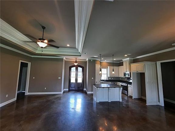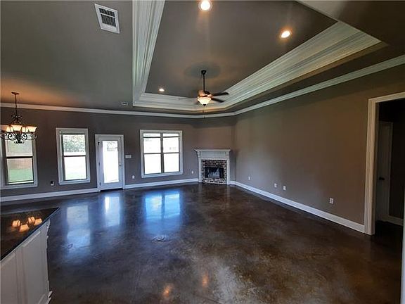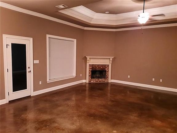 Great opportunity to live in an outstanding neighborhood. Home has several features that you will find appealing and somewhat unique. Open floor plan includes an over-sized island, Wood burning fireplace and tray ceiling that has 2 ft of crown moulding. Large windows offer plenty of light that assists in intensifying the beauty of this marvelous home. No carpet in this home. Scored and stained concrete throughout. The back porch has gas line for your outdoor grill