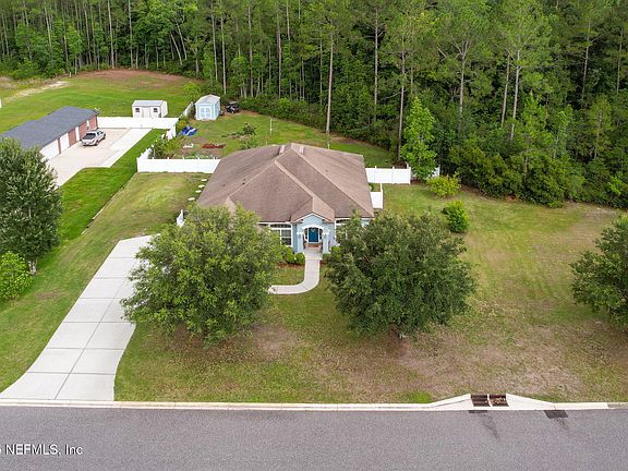 Country Living at it's Best in the Prestigious Jacksonville Ranch Club! Escape to this Beautiful Well-Maintained Four-Bedroom, Three-Bathroom Estate Home. Sitting on nearly Two Acres of Land, this Home has a wonderful Open Floor Plan perfect for Entertaining and everyday living. Enjoy the Screened Rear Porch or step out to the established lush gardens to an assortment of vegetables and blueberries, blackberries, lemon, loquat, nectarine and apple trees all backed up to a private wooded preserve. The house has been recently painted along with new flooring. There is a newer Water Heater and updated sprinkler system and the Aerobic Septic System. The Shed in the back of property is NEW and will stay with the Property.