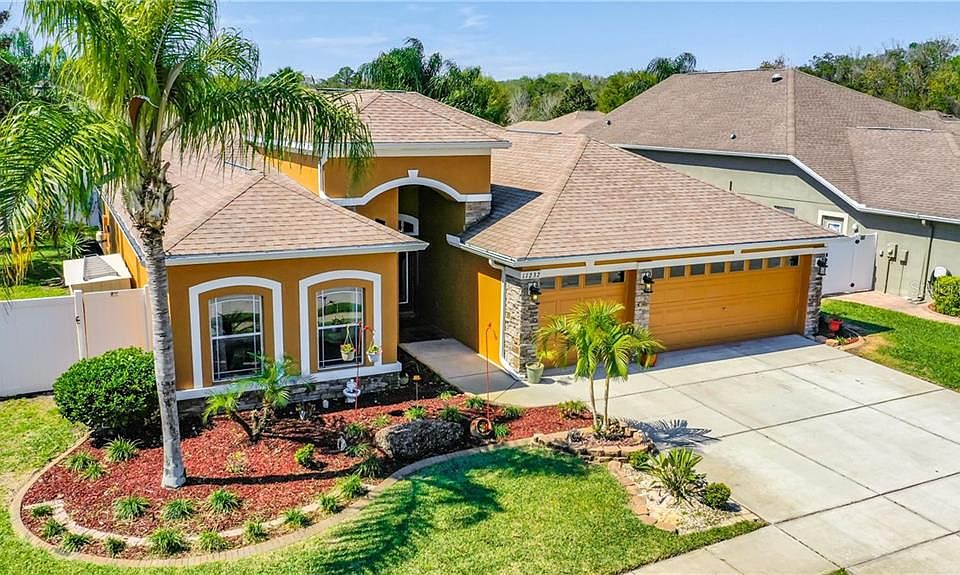 Welcome to this ELEGANT & SPACIOUS 4 Bedroom 2 Bath Home 3 Car Garage HOME located at 11232 Ragsdale Ct. in the UPSCALE GATED WATERFRONT COMMUNITY OF Waters Edge in New Port Richey. Your AMAZING HOME has a WATERFALL SWIMMING POOL within a screened lanai overlooking tropical landscaping. Plenty of back and side yard for kids, grandkids, pets and PARTIES. The OUTDOOR KITCHEN and living space is a dream come true for those that love to enjoy the beautiful Florida weather and sunsets. OPEN THE TRIPLE SLIDING DOORS and let in the fresh air! This Contemporary Country styled home is freshly painted interior and exterior as well as the pool deck. You'll LOVE the NATURAL SUNSHINE with updated light fixtures ILLUMINATING the interior. Additionally your GOURMET KITCHEN boasts GRANITE COUNTERTOPS, TALL BEAUTIFUL WOOD CABINETS for lots of storage, An EATING ISLAND and EATING BAR and extra Breakfast Nook. 18" Tile Floors everywhere, this floorplan is a MUST SEE. The 3 CAR GARAGE is a dream come true with extra space for Bikes, EXTRA Vehicles or PLENTY OF ROOM FOR STORAGE. Waters Edge is a RESORT LIKE COMMUNITY with Community Pool, 2 Playgrounds, Huge Fishing Lake, a fishing pier, Splash Area, Game Room, Basketball & Tennis Courts and Fitness Center with approx. 9,000 square foot CLUBHOUSE, FITNESS CENTER, Enjoy the pristine natural Florida living experience of Waters Edge!! YOU WILL FALL IN LOVE with THIS HOME. CALL ENA to schedule a PRIVATE viewing. Make sure to see the WALK THROUGH VIDEO!