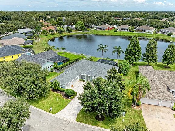 Live the Florida Lifestyle with this meticulously maintained 3-bedroom 2-bath 2 car side load garage with golf cart space. Step inside to be greeted by new luxury vinyl flooring and an open floor plan featuring high ceilings, a great room with built-in shelving and drawers, and plantation shutters throughout. The open floor plan includes glass sliders that lead to a newly constructed panoramic screened lanai with a heated pool and spa that have been resurfaced and retiled. The area overlooks lake views and is suitable for outdoor gatherings or relaxing evenings. The kitchen has been updated with modern cabinets, new flooring, a farmhouse sink, Quartz counters, and an eat-in breakfast nook area that offers views. The split-bedroom layout offers privacy for the Primary Suite, creating a peaceful retreat. The spacious 25x12 Primary Suite includes remote-controlled custom shades and sliding doors that open to the pool area, with space for a sitting area. You will not be disappointed with your spacious walk-in closet 11X14. The previous owner constructed an enclosed, air-conditioned storage room that is suitable for use as an office or can be converted back into a three-car garage. River Woods offers fantastic facilities including a community pool, clubhouse with fitness room, and two tennis/pickleball courts, with no CDD fees and low HOA dues, this home offers incredible value. Ideally located near shopping and dining, with easy access to Sarasota, Lakewood Ranch, Tampa, and St Petersburg. This home truly has it all!