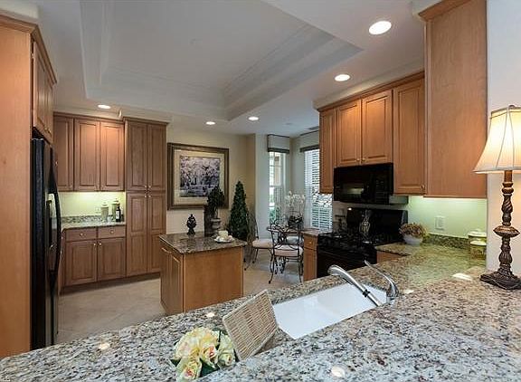 1st Floor 2/2 + Den with 2,134 s.f. Under Air. Large Kitchen has Light Wood Cabinetry, Granite Counters, Center Island, Breakfast Bar and Eat-in Nook. Diagonal Tile and Crown Molding Living, Dining area, Bathrooms have Comfort Height Cabinetry and Stone counters. Guest Bedroom can be Ensuite, Den could be converted to 3rd Bedroom. Windows have Custom Valances and Drapery + Blinds, Tray Ceilings, Upgraded Fans and Lighting, Close to Community Pool-Spa, 2 Car attached Garage. Negotiable Turn-Key Furniture and Furnishings. Big Laundry with Cabinet, Counters and Sink, Upscale Courtyard Entry, Paverstone Walkway and Driveway. 186 slip deep water Marina with slips available for lease or purchase. Some amenities herein available but not offered. Living area sq. ft. per developer floor plan.