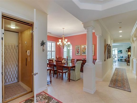 COMPLETE PACKAGE!!!SPACIOUS TURNKEY FURNISHED & PROFESSIONALLY DECORATED CORNER UNIT 3BR/3BA/+DEN CONDO IN EXCLUSIVE GULF HARBOUR YACHT AND COUNTRY CLUB.INCLUDES SPORTS MEMBERSHIP AND GOLF CART The Light and Bright professionally decorated second floor unit has coastal colors and furnishings. There is a private elevator from foyer plus a wood staircase to upstairs. The modern kitchen has numerous upgrades including 42" solid wood cabinetry, granite counter tops, newer stainless appliances with a counter depth refrigerator, island, and breakfast bar. The dining room/den adjoin kitchen. The master suite is oversized with 2 large closets and master bath features dual sinks, and expansive shower. Back bedroom is like a second master suite. Plantation shutters with designer ceiling fans complete the décor. Spacious lanai has electric storm shutters and the tropical landscaped view affords privacy. There is a private two car garage. Buyer to pay sports membership transfer fee.