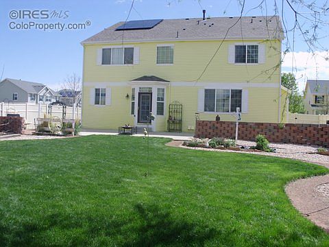 Tired of high utility bills? This home includes a $35,000 solar installation with electric bills averaging $20! Sellers are offering a $5,000 incentive to buyers loan and closing costs! Home has mountain views and landscaped backyard with extra patio areas with raised garden beds. Check out the large bedrooms in this home with upstairs laundry! Great community with access to Firestone Trail and Charter School!! There is NO NOISE from the school! Front room, family room and rec. room!!
