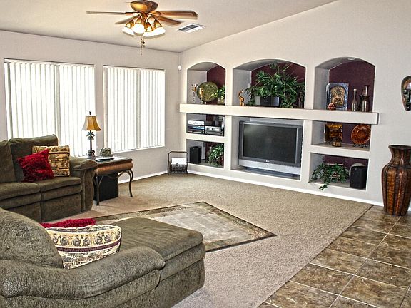 Situated on an Interior N/S Lot Surrounded by Single Levels Featuring Great Room Split Floor Plan, True 4 Bedroom, Lots of 20'' Tile, Vaulted Ceilings, Media Niche in Great Room, Accent Paint, Surround Sound with In-Ceiling Speakers, Eat-In Kitchen with Island/Breakfast Bar, Pantry, Cherry Cabinets, Smooth-Top Range & Built-In Microwave, Inside Laundry Room, Upgraded Door Hardware, Vaulted Ceilings with Plant Shelves in Master Bedroom, Separate Shower/Tub, Dual Sinks, and Walk-In Closet in Master Bath, Walk-In Closets in 2 or 3 Secondary Bedrooms, Covered Patio with Ceiling Fan & Extended Concrete with Flagstone Trim, Grassy Yard, Conversation Firepit with Propane Gas, RV Gate, & Sunscreens