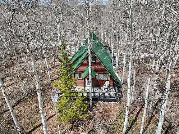 This adorable A-frame cabin sits tucked away in the woods of upper Timber Lakes on a rare double lot stretching over 2 pristine acres. This charming mountain property is surrounded by dense aspens and pines, creating a secluded haven that feels worlds away - yet remains remarkably accessible year-round! Step inside to find an ideal open floor plan with vaulted ceilings, exposed beams, tons of natural light, thoughtfully updated kitchen & bathroom, updated plumbing, new water heater, new LVP flooring, mini-split, and a cozy wood burning stove to unwind by after a day of mountain adventure. Enjoy the new spacious front and back decks where you can take in the breathtaking sunsets and watch for wildlife. Experience the best of each season, from snow-draped winter wonderlands to vibrant springs, golden autumns, and long, sun-kissed summer days.Whether you're seeking a tranquil weekend getaway or a year-round basecamp for adventure, this cabin offers direct access to a world of recreation-hiking, snowmobiling, skiing, mountain biking, and ATV trails right from your doorstep. You're also just minutes from all the amenities of Heber Valley and Park City, and only an hour from Salt Lake City International Airpor