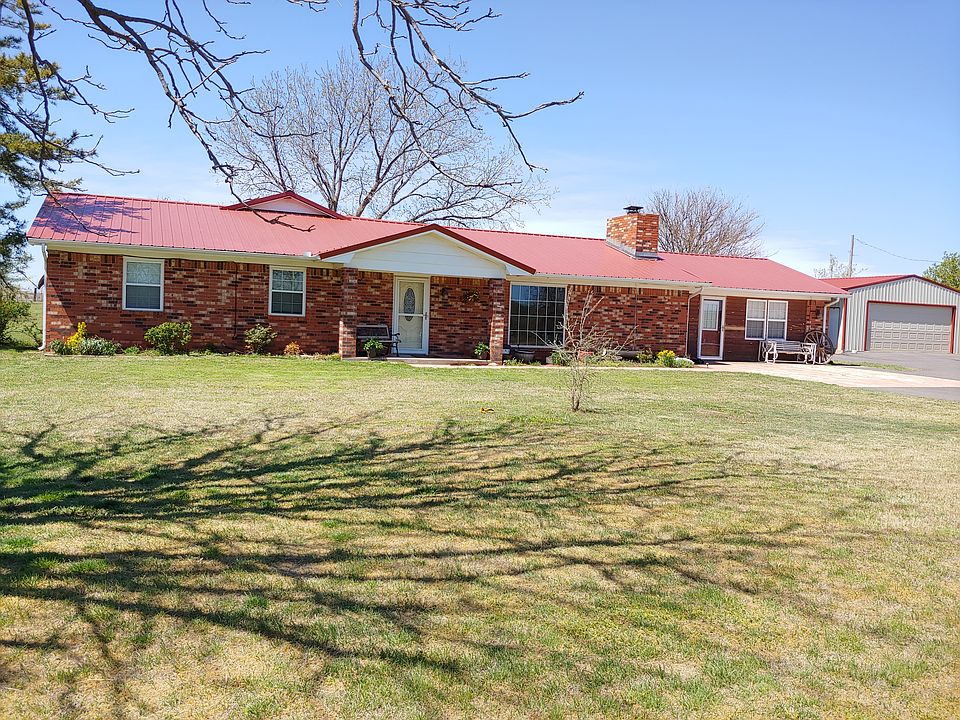 COUNTRY HOME LOCATED WEST OF ELK CITY & IN THE MERRITT SCHOOL DISTRICT! This beautiful country home sits on over 6 acres. Living room is spacious and inviting with recently installed wood plank flooring, wood burning fireplace, built-ins, & recessed lighting. The custom master suite features a massive walk-in closet, granite vanity, tile surround shower and lots of storage. Home has updated windows, metal roof, water softener and new HVAC in 2010. 2nd living room gives this home an abundance of square footage. You'll never be without comfort with the protection of this automatic propane generator. Insulated 30x30 SHOP with electric, heat, AC unit, & a 14X30 lean to. New storm cellar installed in May, 2019. Property is adorned with pecan, apple, 2 apricot, 2 peach, 2 pear trees & a garden space. Popular visitors include deer, quail, fox, & turkeys.