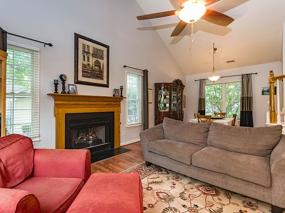 Here is it!! Harrington Grove home with a one car garage and fenced in backyard! Fabulous location and very desirable schools! As soon as you enter the home you are greeted with beautiful wood floors and vaulted ceilings. Enjoy the gas fireplace as you entertain in your spacious family room attached to a hard to find formal dining room in this price range! Updated kitchen with beautiful granite and refrigerator to convey! Three large bedrooms upstairs with newly cleaned carpets. Popular pool optional!