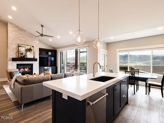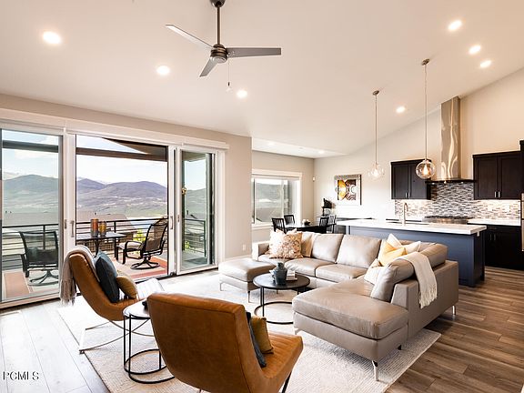 Situated on one of the most scenic ridges in Hideout, this home is ideal for simple living or entertaining guests. Open the 9' living room sliding doors, enjoy your favorite music and take in the endless views. Located on Shoreline Court, this home has 3 Bedrooms and 2.5 Bathrooms, and 2664 square ft. On the main level, you will find an open concept living room and gourmet kitchen, Primary suite, powder room, and laundry room. The living room is gorgeous with dramatic windows, lighting, and a ledgerstone fireplace. The kitchen has stainless appliances, walk-in pantry, and Quartz counters. The Primary suite includes a dual shower with rainfall shower head, large walk in closet, views from the bedroom and ample storage. On the lower floor, the views continue to the second living area, along with 2 bedrooms and a full bathroom. A unique feature in this home is an unfinished, 645 sq ft room. This room allows the new owner to build to suit - a theatre, exercise room, office, would be exceptional uses. NEST system, steam humidifier, 5:1 surround sound wiring, epoxy coated garage flooring, upgraded AC system, all contribute to this well planned home. Shoreline Ct is located 15 minutes to Park City, 20 minutes to Kimball Junction, 45 minutes to SLC Airport and minutes to some of Park City's finest recreational areas.