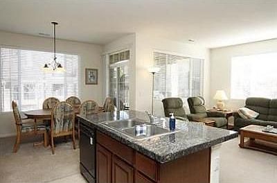 EXTREMELY QUIET END UNIT! BRIGHT, OPEN FLR PLAN! 3 BDS, 2.5 BATHS! CERAMIC TILE FLRS, CHERRY CABS, GRANITE CTOPS, ISLAND! KIT OPENS TO GRT ROOM W/ GAS FPL! VAULTED MSTR W/GAS FPL & PRIVATE TREX DECK! MAIN LVL PATIO! 2 CAR GAR + 1 RESERVED PARKING SPACE!