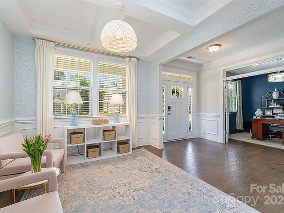 Welcome to this beautifully updated 4-bedroom, 2.5-bath home situated on a desirable corner lot with a fully fenced backyard — perfect for entertaining, play, or pets! Step inside to discover an open floor plan filled with abundant natural light, ideal for both relaxing and hosting. The main level features a private home office, ideal for remote work or a quiet study space. Fresh new carpet and fresh paint throughout the home give it a bright, move-in ready feel. All bedrooms are conveniently located upstairs, including a spacious primary suite featuring elegant coffered ceilings, a large en-suite bathroom, and an expansive walk-in closet. Whether you're enjoying time in the airy living areas or relaxing in the oversized primary suite, this home offers space, style, and functionality. Short drive to I-85, 485, Concord Mills and uptown Charlotte. Minutes from Cox Mill area. Walking distance to neighborhood amenities. Come make this house your home just in time for Summer!