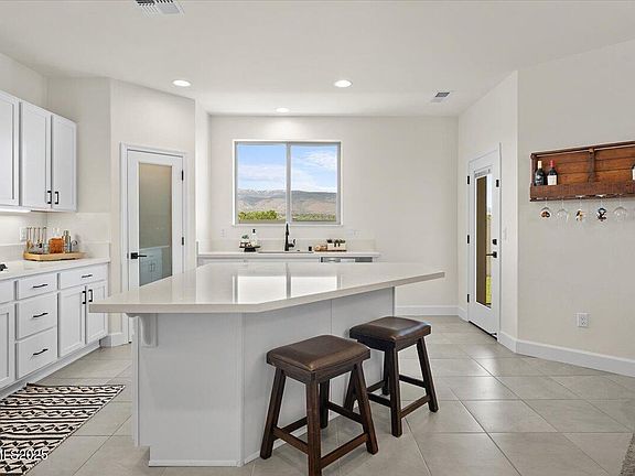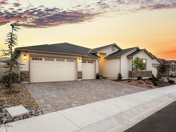 VIEWS! Arguably one of the best views in South Reno + Damonte Ranch, this home sits on a sizable lot with unobstructed views of Mt Rose, the hills and some sparkle of downtown Reno lights! Recently built in 2024, this home is better-than-new-construction with no wait to finish building and lower taxes than a newer home! The open concept floorpan is flooded with natural light and beautiful picture-like views from every window, with an bright and airy kitchen outfitted with a suite of top-tier KitchenAid appliances, flowing right into a dining and living space perfect to all be together! The oversized living area feels even larger with a full wall slider, opening up for seamless indoor + outdoor entertaining. The expansive covered patio is the perfect spot for your stubbed-in BBQ, to enjoy the view and play in the yard. As low maintenance as it gets, this yard feature upgraded faux lawn (turf) and beautiful rock and flower beds with a dog-run tucked neatly on the side. Front yard maintenance is taken care of by the Association, with no weeding, watering or any care needed from you, they'll take care of it all! Snow removal in the winter as well, making this the ultimate low-maintenance, single level, easy-living dream-come-true! Primary suite is situated on one side of the home with an oversized primary bathroom, featuring an elongated vanity with double sinks, and an extra-large shower. The other 3 bedrooms are on the opposite side of the home, with a dedicated hall bathroom for their use, with double sinks and a separated bathroom space. Finally the home features a flex space, currently used as an office, but also an excellent bar or wine room, toy storage or display area. Don't miss this gem!